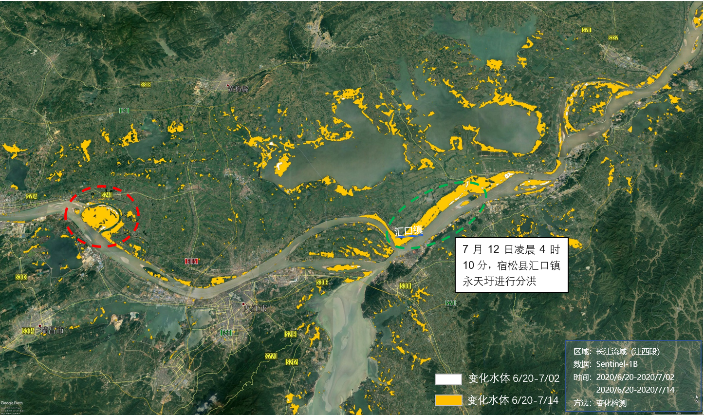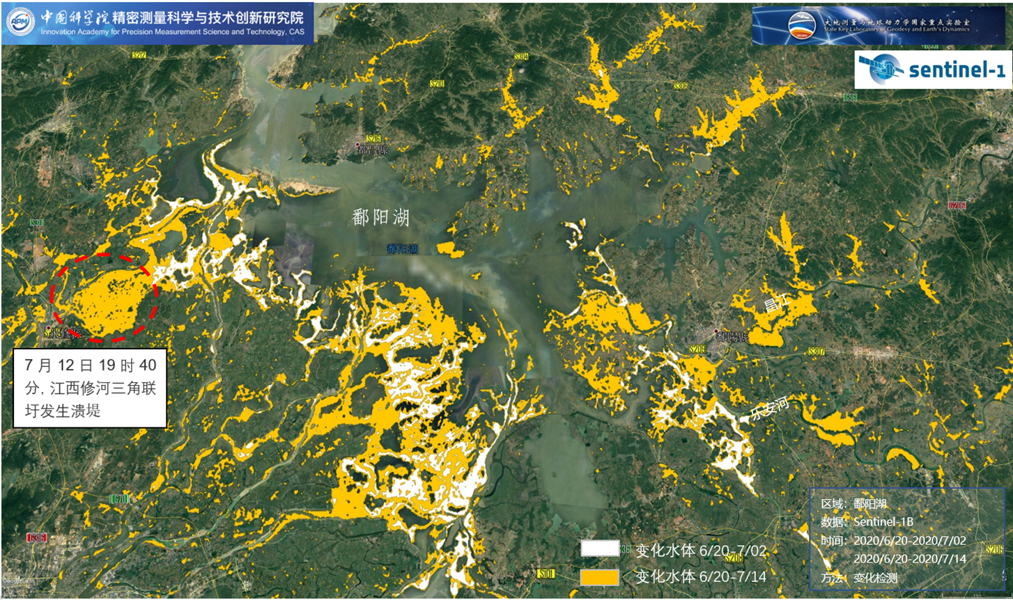 PA真人视讯利用雷达卫星数据成功发布2020年长江中游汛期水情变化图