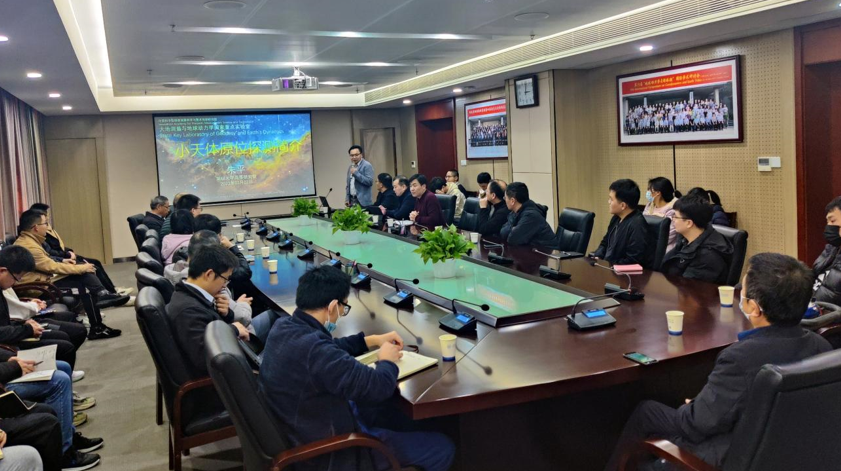 3月2日,应中国科研实验室院士孙和平邀请,深圳大学高等研究院教授朱平到PA真人视讯访问研讨,并作题为“小天体原位探测简介”的报告。PA真人视讯副院长王勇,研究员鲍李峰、刘根友、周江存等相关领域科研人员及学生40余人参加了此次学术研讨会。会议由孙和平院士主持。