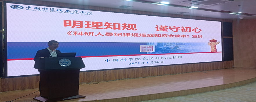 会上,蔡长塔作题为《明理知规 谨守初心——<科研人员纪律规矩应知应会读本>宣讲》的专题报告,详细的介绍了《科研人员纪律规矩应知应会读本》的主要内容,结合警示案例,以案说纪、以案说规。他指出,我们要牢记“创新科技、报国为民”的初心,对纪律规矩要做到“知其然、明其理、懂其作、解其误”,在政治、工作、生活上守纪律讲规矩,当明白人、有为人、守井人,简化工作圈,净化生活圈,纯化朋友圈,管控家属圈,争当廉洁自律的表率,共同营造风清气正的科研生态环境。